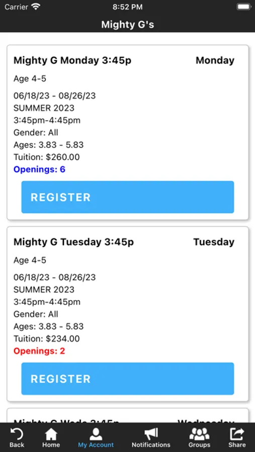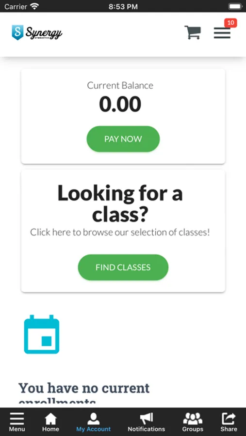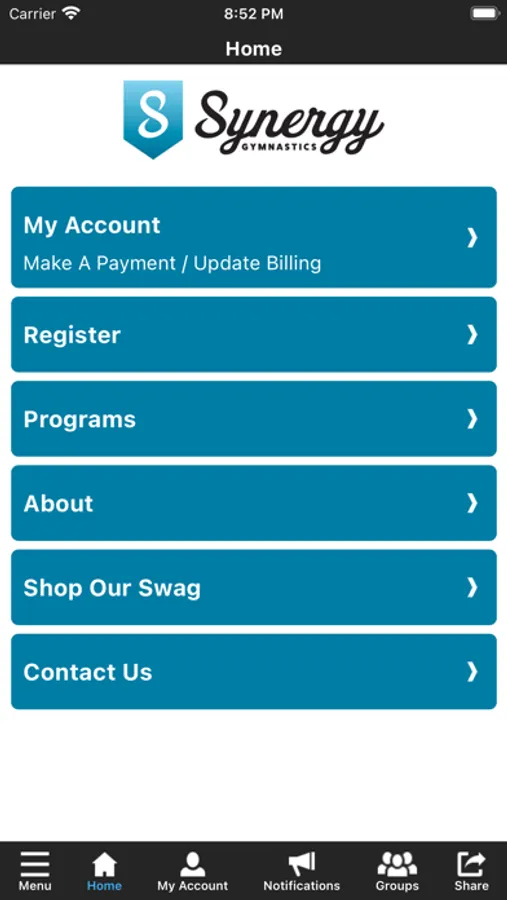 The Synergy Gymnastics app allows you to manage your account with ease, register for classes, clinics, open gyms, virtual punch cards and special events. You'll also receive important notifications about class changes, closings, registration openings, special announcements, and upcoming events.