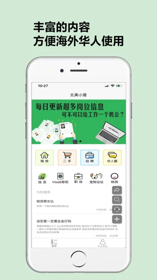 【北美小屋】是华人在海外生活手机里必不可少的App。