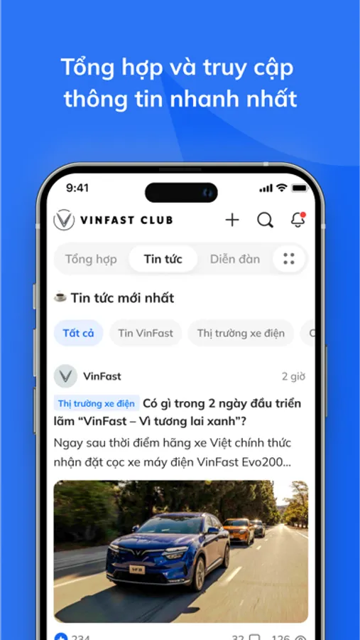 Thành viên có thể tổng hợp và truy cập thông tin liên quan tới sản phẩm và thương hiệu ô tô VinFast nhanh nhất.