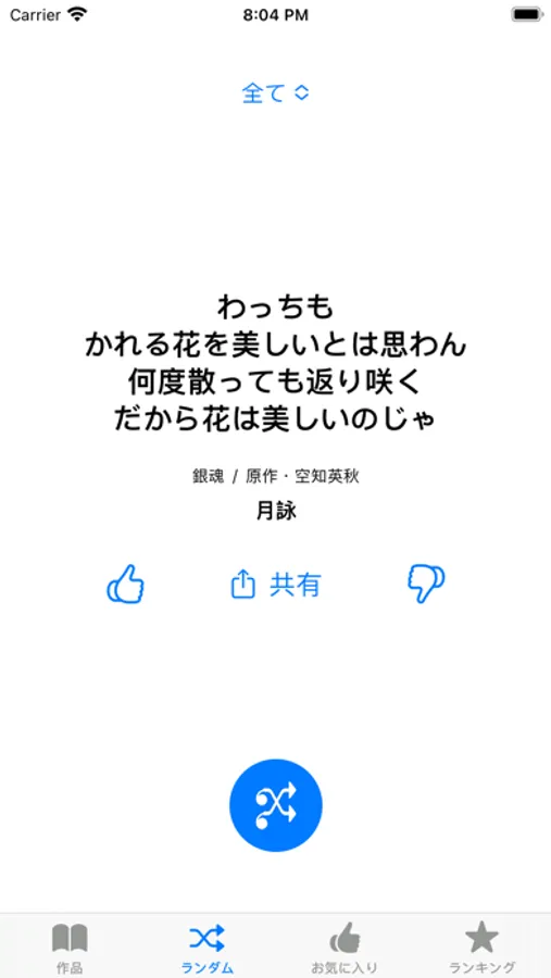 ボタンをタップすると、収録されている名言がランダムで表示されます。