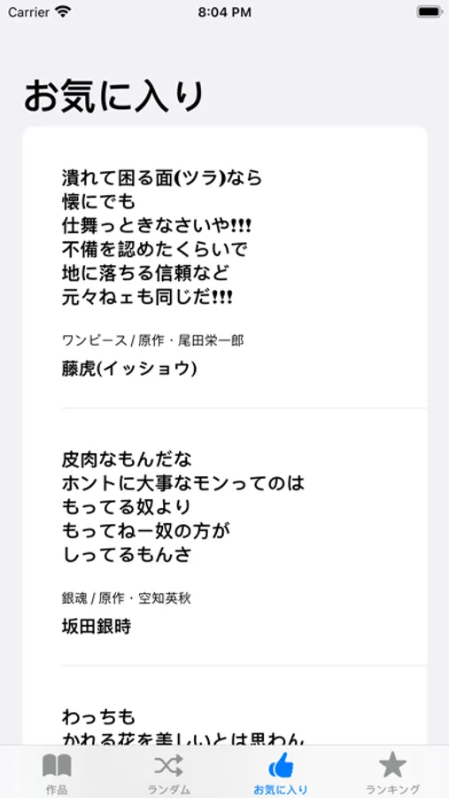 印象的だった名言はお気に入りに登録できます。