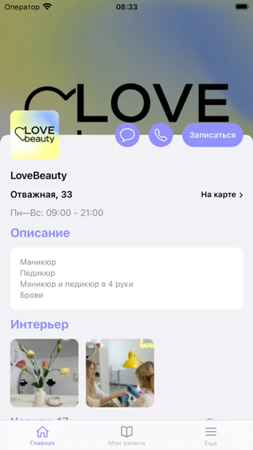 Официальное мобильное приложение студии LOVE BEAUTY.