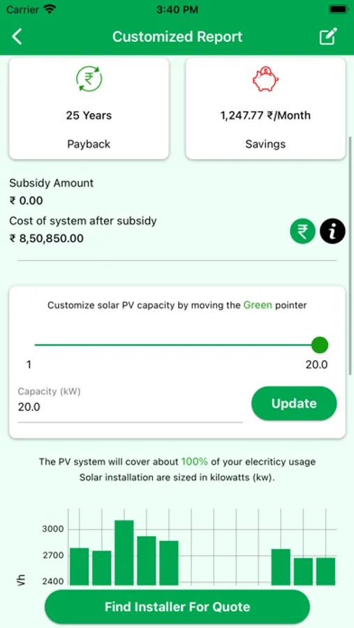 1. Create Solar PV (SPV) Design (Map based UI to calculate the size of the SPV system that can be installed)