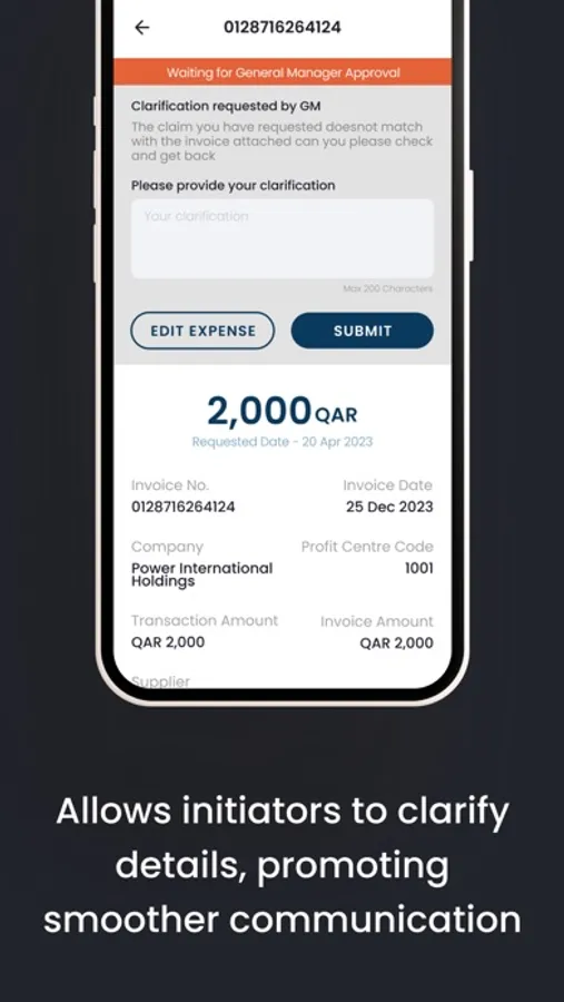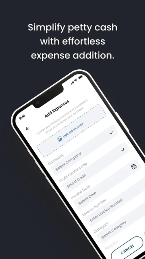 - Expense Submission: Easily settle expenses by uploading invoices, adding outlet details, selecting profit center codes, entering invoice dates, supplier names, invoice numbers, amounts, categories, and optional comments. Simply submit to streamline the process.