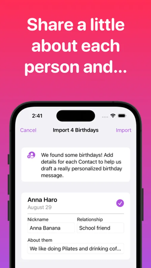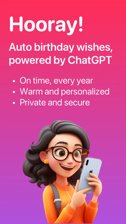 Hooray uses the birthdays stored in your Contacts and Calendar in a completely private and secure way.