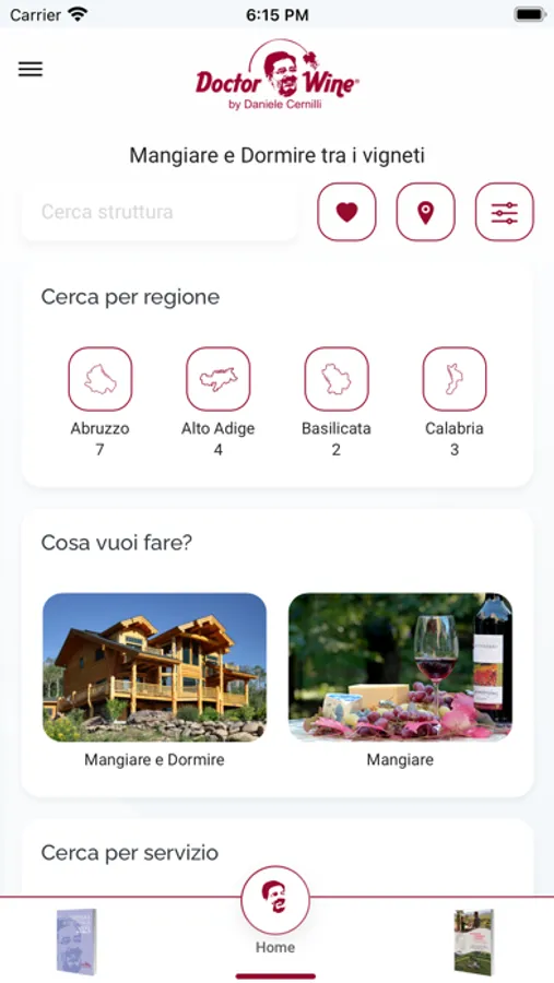 Cantine Svelate: Parti per un viaggio virtuale attraverso i paesaggi viticoli italiani. Scopri affascinanti cantine vicine a te con la funzione di localizzazione. Immergiti nella loro storia, ospitalità e servizi di svago, creando ricordi indimenticabili. Crea il tuo percorso enogastronomico attraverso le regioni iconiche dell'Italia. Scopri gemme nascoste e rinomate tenute, creando un'avventura enologica personalizzata guidata da DoctorWine.
