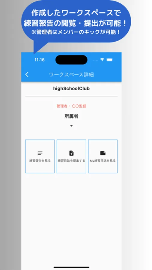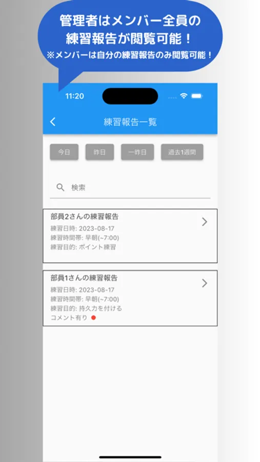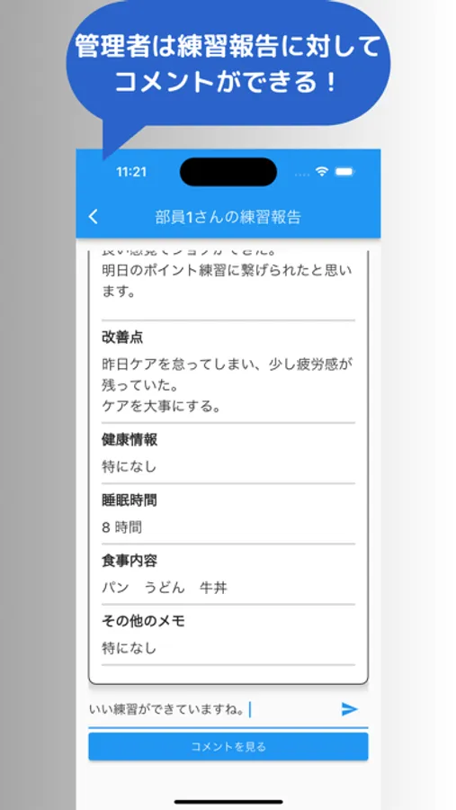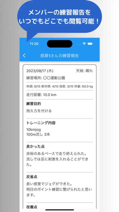 どこからでも提出でき、いつでもどこでも部員の練習を閲覧・把握でき、チーム全体の向上に役立ちます!