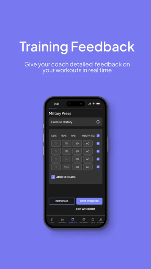 Coachd allows athletes to easily view and log all of the workouts assigned to them by their coach. Athletes can also give detailed feedback on each and every exercise, right down to their achieved sets, reps, weight and RPE.