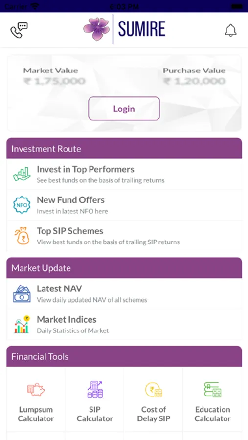 SUMIRE SECURITIES is one-stop shopping for all your Financial needs. You can use this state of the art app to stay on top of your Complete Financial Portfolio with all assets: