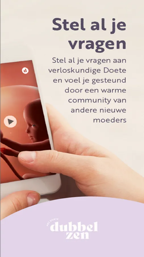 Ervaar alle kennis en inspiratie van verloskundige Doete gebundeld in één handige app: Dubbel Zen. Deze app begeleidt jou stap voor stap tijdens deze bijzondere periode van moeder worden. Volg de groei van je kindje met de betoverende animaties van Klein Leven, krijg waardevolle tips voor een ontspannen zwangerschap, bevalling en moederschap, bereid je goed voor op de bevalling met The Ultimate Birth Guide en deel je vragen in de community met andere aanstaande moeders. Ook kun je je vragen stellen tijdens het online spreekuur met verloskundige Doete zelf. Met liefde en aandacht is deze app speciaal voor jou ontwikkeld. Ontdek de geboren moeder in jou.
