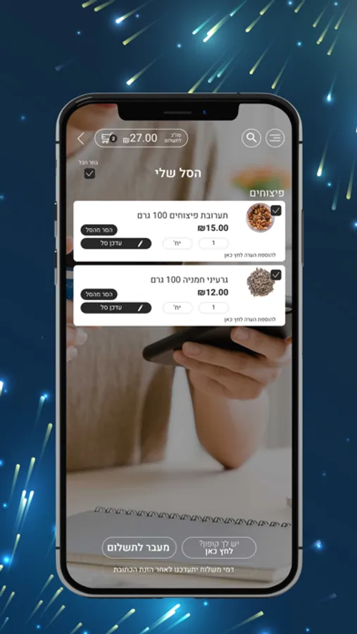 ניתן לבצע הזמנות ומשלוחים ישירות מהאפליקציה אקספרס של חצות אונליין.