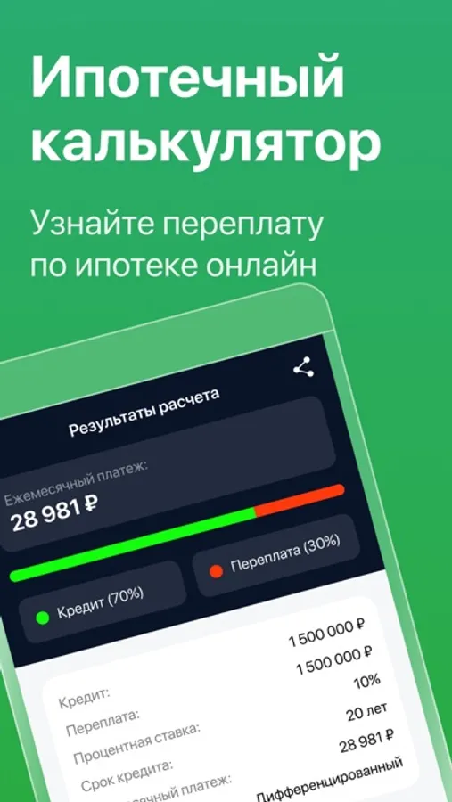 Калькулятор ипотеки — это программа, с помощью которой можно рассчитать максимальный размер кредита, определить размер ежемесячного платежа, понять, какой будет переплата в зависимости от срока кредитования. Основные данные, которые используются при расчете — это стоимость недвижимости, размер первоначального взноса, процентная ставка, срок кредитования и тип платежей: они могут быть аннуитетными и дифференцированными.