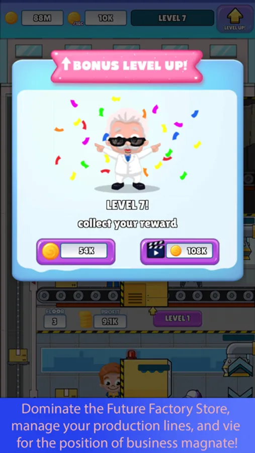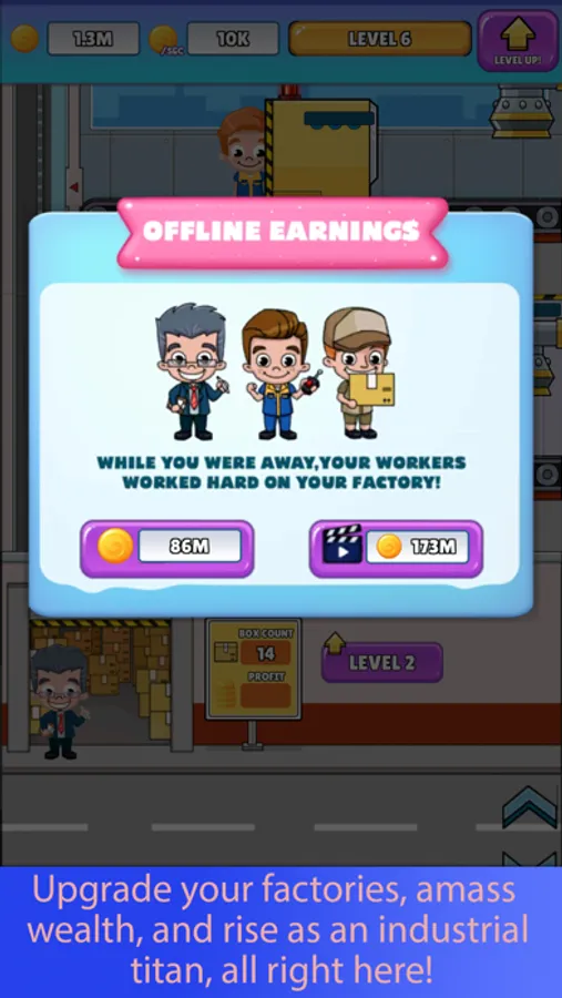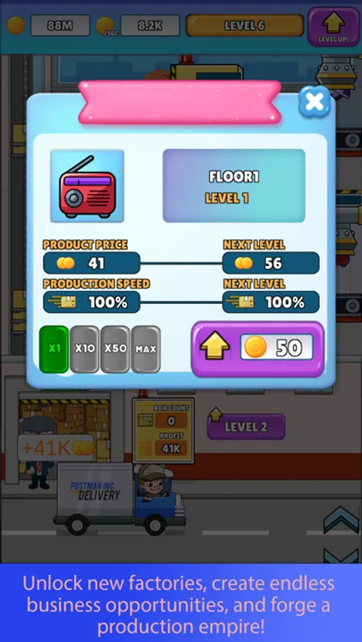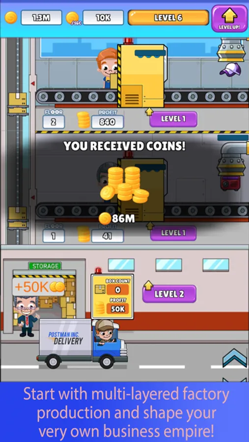 Multi-layered Factory Production: With each upgrade, your production speed will increase, making money easier than ever!