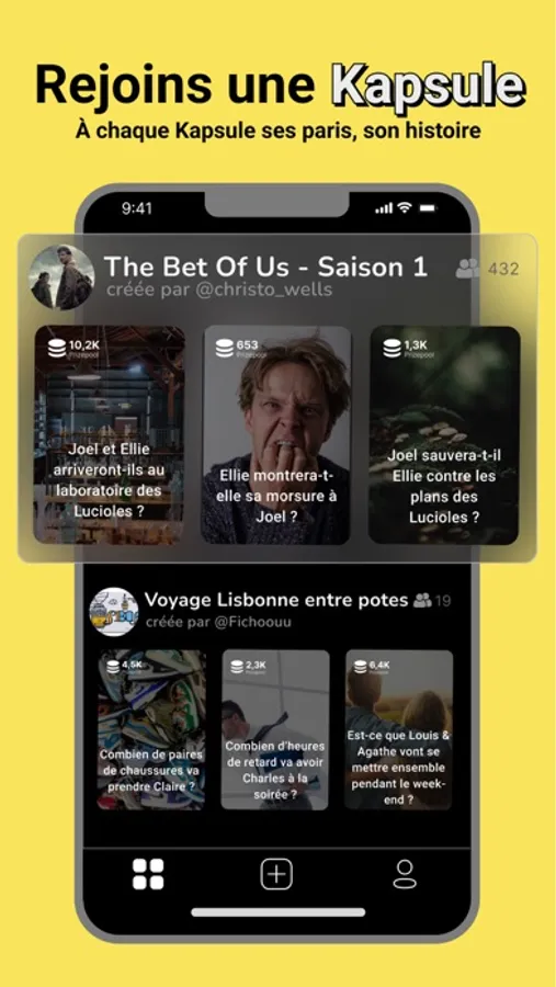 Rejoins les Kapsules de tes influenceurs préférés, interagis avec les paris qu'ils te proposent, monte en haut du classement et montre que tu es leur plus grand fan.