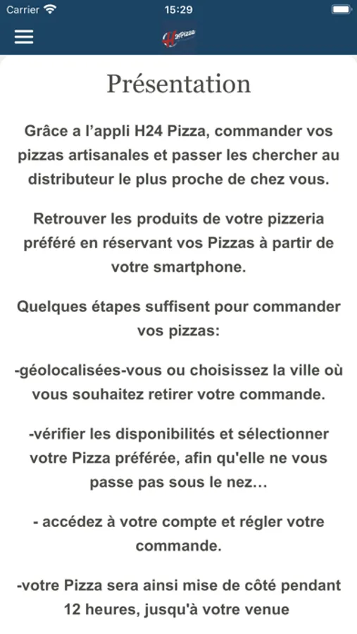 Retrouver les produits de votre pizzeria préféré en réservant vos Pizzas à partir de votre smartphone.