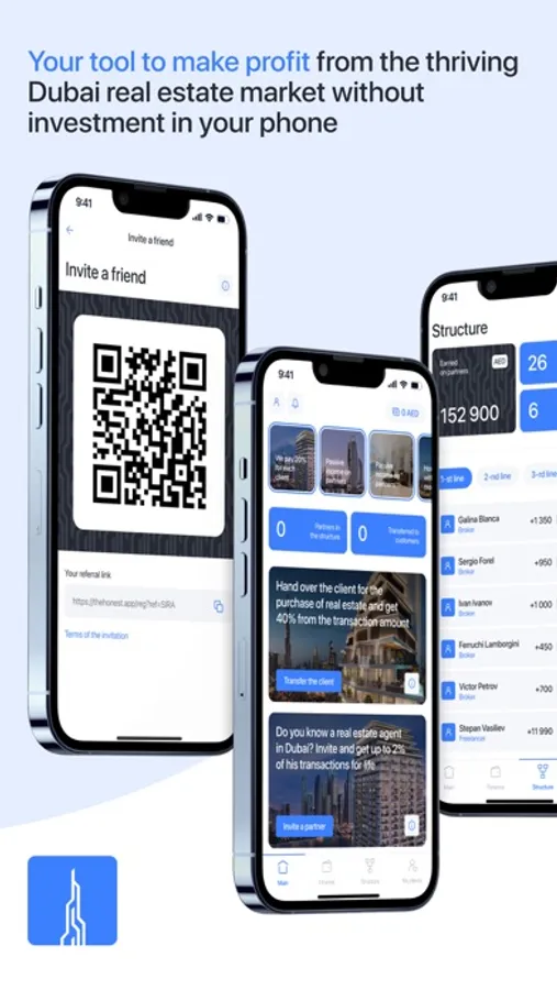 We are actively expanding the list of functions of the application and making it convenient for both brokers and partners of the company. Install the app, register and start earning on the Dubai real estate market without investment today.