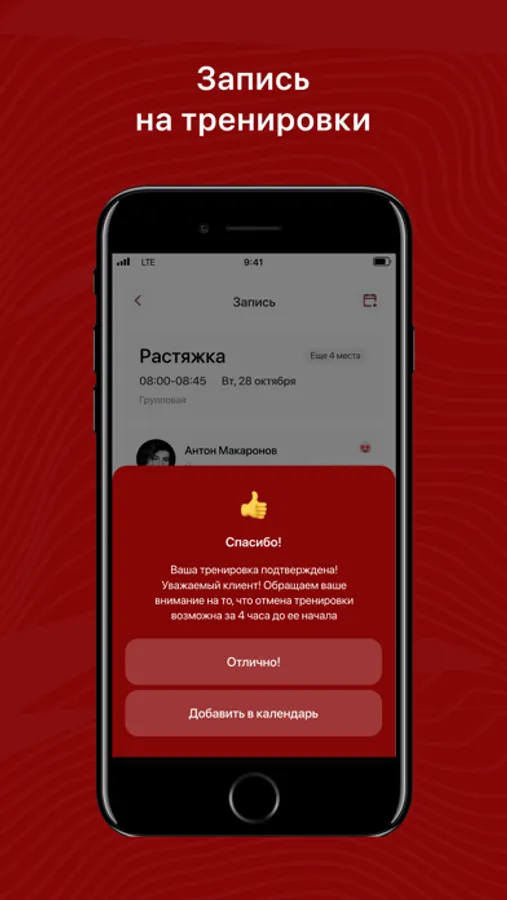 - Записаться на групповые тренировки;