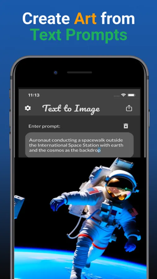 Navigating the Text to Image | Art app is a user-friendly experience, designed to ensure that your focus remains on the creative process. The intuitive interface guides you through the steps, making the transformation of text to image an effortless endeavor.