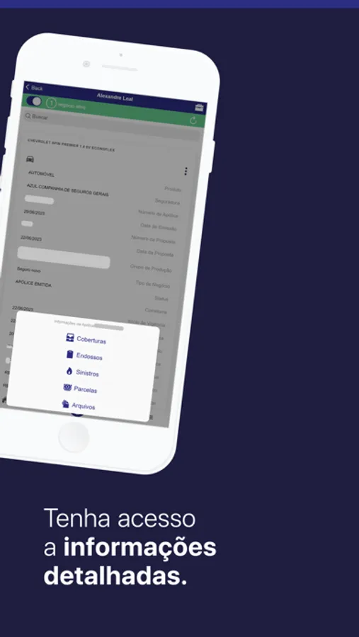 Filtro de Documentos ativos e inativos, a fim de manter um histórico dos documentos do cliente; de parcelas pagas, agendadas e vencidas, de Sinistros em andamento e finalizados; Informações dos endossos realizados; Baixa de Arquivos (Avulsos e Vinculados): Arquivos correspondente ou não a uma Apólice.