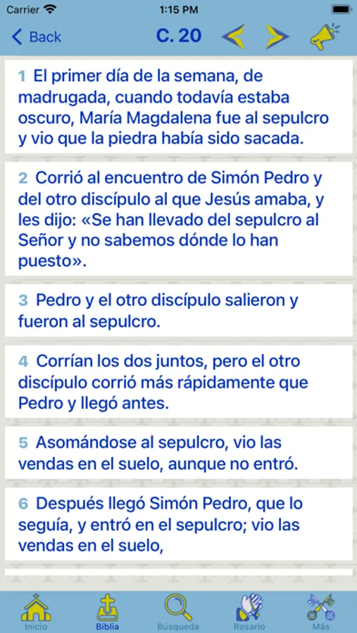 This is an app version of the Catholic Bible, where you can easily read and consult the Bible without using your data or the internet. You can search the books and chapters as well as share your selection of verses with different backgrounds on your favorite social network.