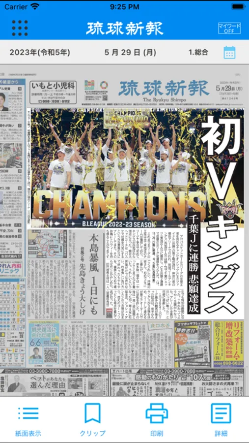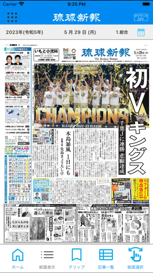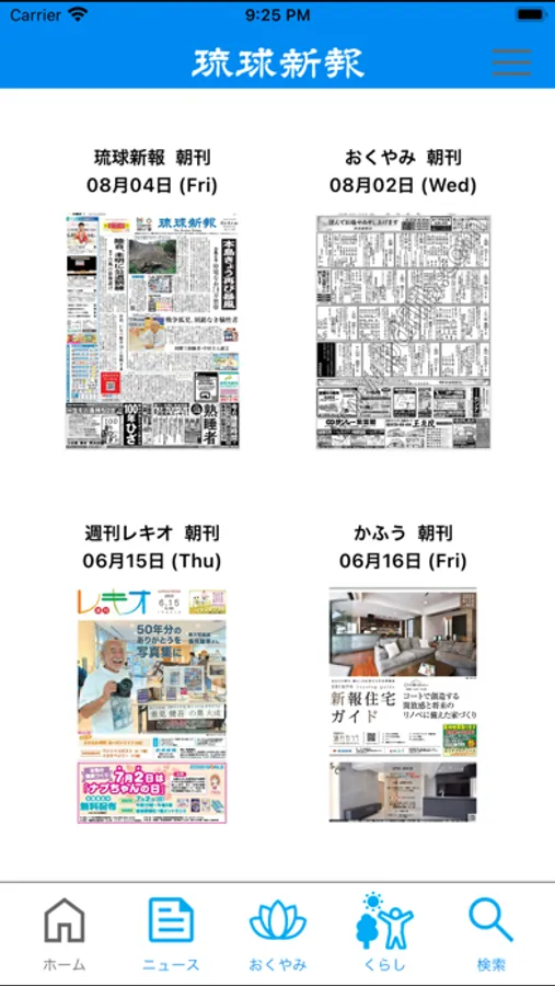 ・「琉球新報」のほかにも「週刊レキオ」「かふう」「りゅうPON!」や、号外、おくやみ紙面も一覧画面から見れます。