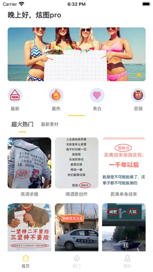 一键生成酷炫图片,刷爆你的朋友圈。玩法丰富,恶搞,装x,表白,酷炫模版随你定制