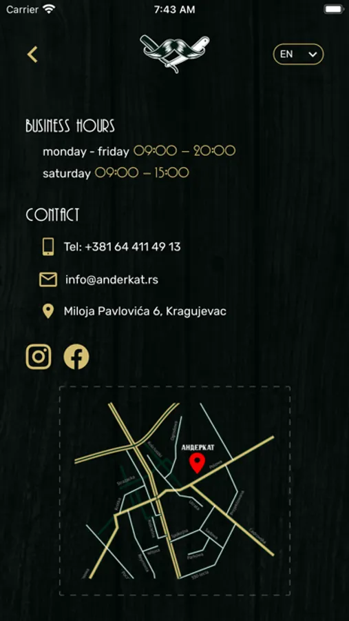 Zanimljiva istorija beberskog zanata počinje u starom Egiptu. Nakon toga ubrzo je nastala i u staroj Grčkoj gde su zanatlije svakodnevno sređivale frizure i brijali muškarce. Berbernice su posećivali i neretko zbog medicinskih zahvata. Iako je danas posao berbera sveden na samo uređivanje kose i brade, njihova važnost ne gubi značaj. Anderkat berbernica vam predstavlja autentičnu atmosferu i kvalitetnu uslugu. Pravi je hedonizam isprobati i odabrane mirisne note naše kozmetike. Vidimo se !