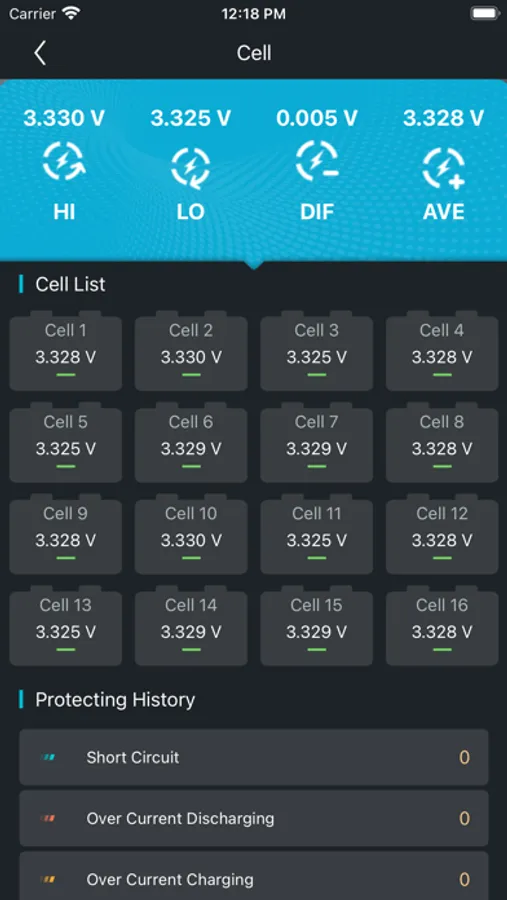 3. Each data comparison of the battery cell, the voltage difference. Maximum voltage cell Minimum voltage cell. And the display of cell balance
