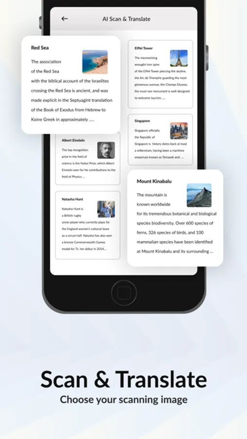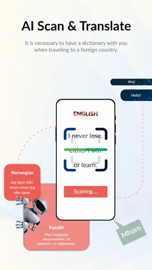 AI Camera Scan & Translate is an instant translator app that you to translate photos of text, objects, locations, or documents into all languages with your phone's camera.