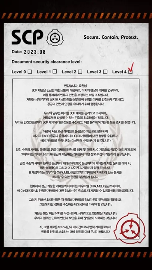 ▷Check basic information of SCP objects: View the basic story of isolated SCP