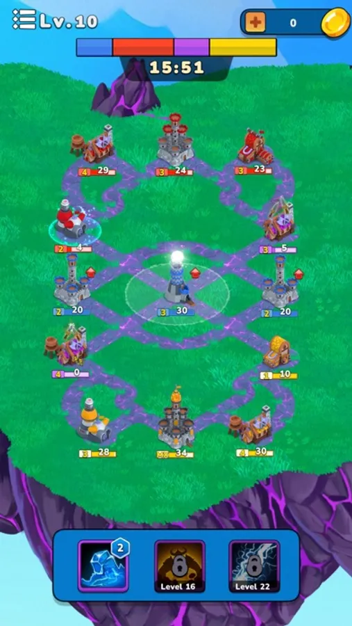 What you need to do is to lead the blue soldiers to guard your own tower while occupying towers of other colors.