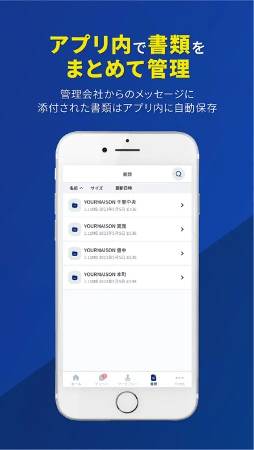 収支報告、管理業務の報告、修繕相談をよりスムーズに正確に受け取ることができるようになり、パナソニック ホームズ不動産とやり取りしたメッセージ、書類、写真など煩雑になりがちな情報をアプリ上でまとめて管理することができます。