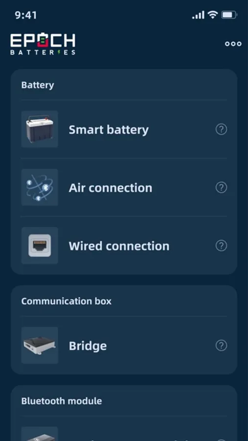 The Epoch Pro APP is specifically designed for Epoch Pro batteries and supports information monitoring of individual batteries, as well as battery systems in air connection or wired connection, etc. You can also easily realize the Bluetooth function of the GC2 batteris by connecting the Bluetooth module for more comfortable and convenient user experience.