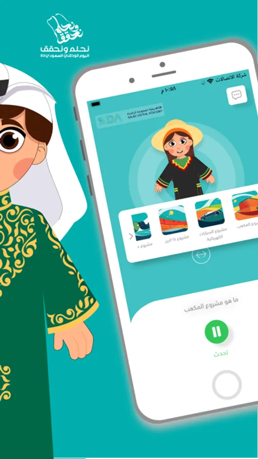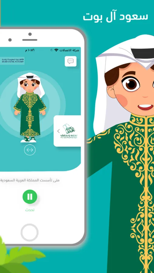 يقدم البوت الذكي تجربة تعليمية تفاعليه ممتعة للأطفال للتعلم والإستكشاف عبر مواضيع متنوعة ومتعددة تتعلق بالمملكة العربية السعودية