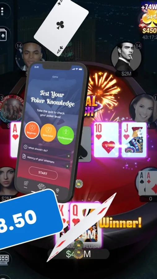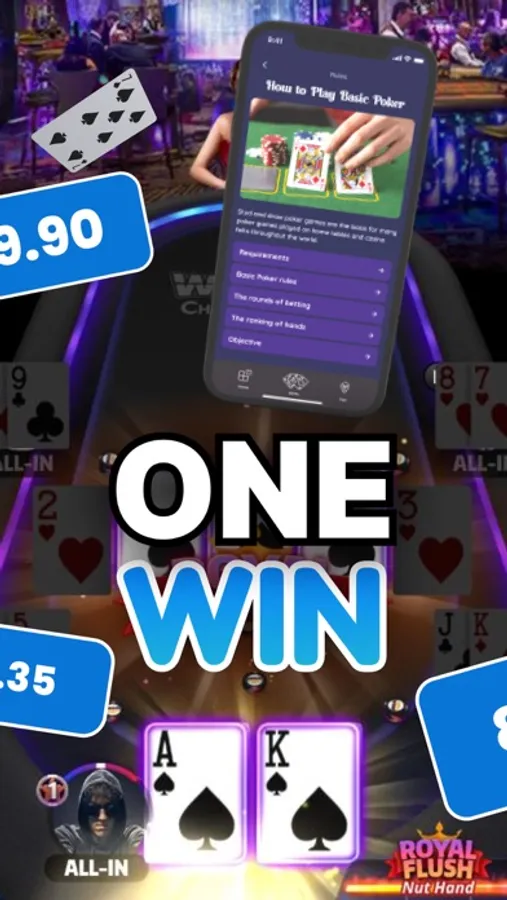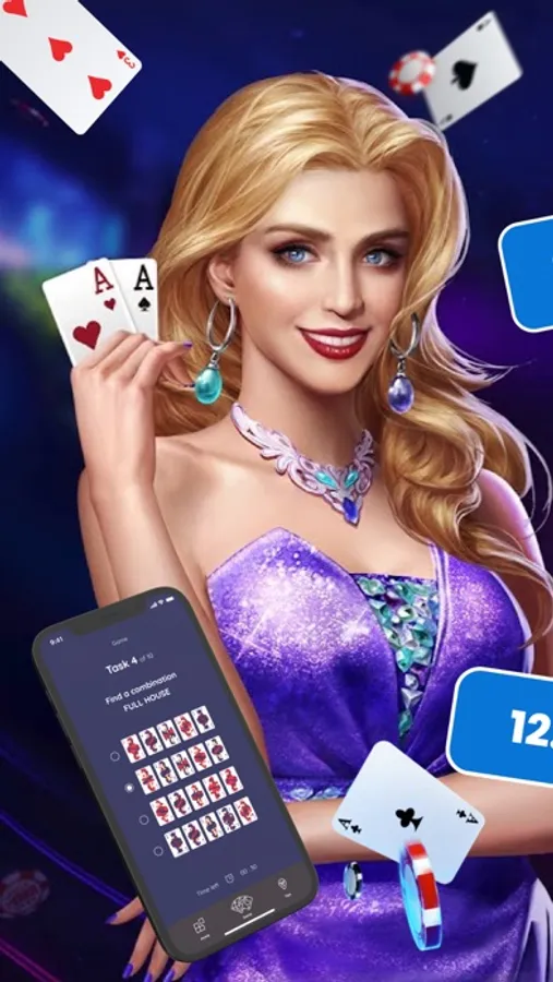 Master the art of poker right from your mobile device. Do you have zero knowledge? No problem, anyone can learn to play. No prior knowledge is required to get started, everything you need is collected and waiting for you in the app. From understanding the basics of poker combinations and terminology to understanding advanced concepts, there's a seamless learning experience for everyone. Not sure about a particular rule or concept? No problem, find instant answers to the most frequently asked questions that will unlock the mysteries of poker and give you the knowledge you need to make confident decisions. And to think and play like an experienced player, you're invited to read tips from professional players. They have accumulated a wealth of knowledge over the years and are now sharing it with you, so don't miss this opportunity! To prevent the process from becoming a chore, a useful mini-game has been developed. In it you continue your learning process in a more entertaining way. When the cards are revealed, you will be asked to identify the displayed poker combination. This interesting feature not only reinforces your learning, but also adds an element of fun when you measure your progress. Don't doubt your abilities, you will succeed, and you may be the next professional poker player whose name will be known around the world!