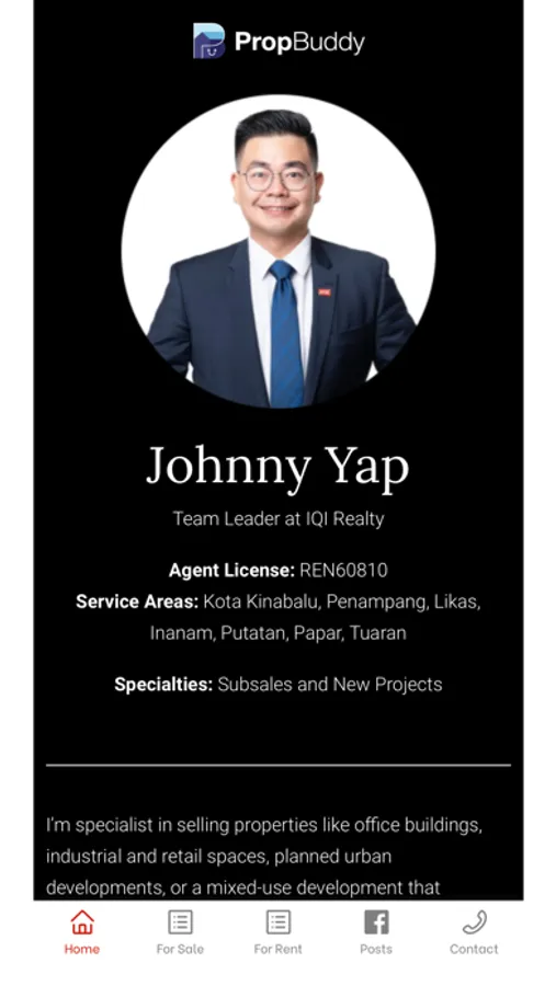 Johnny Yap App is a app that help in finding properties for you according to the categories and location. It also provide you with listings on properties for you. The app also have Contact feature where user can contact agent to discuss on the properties.