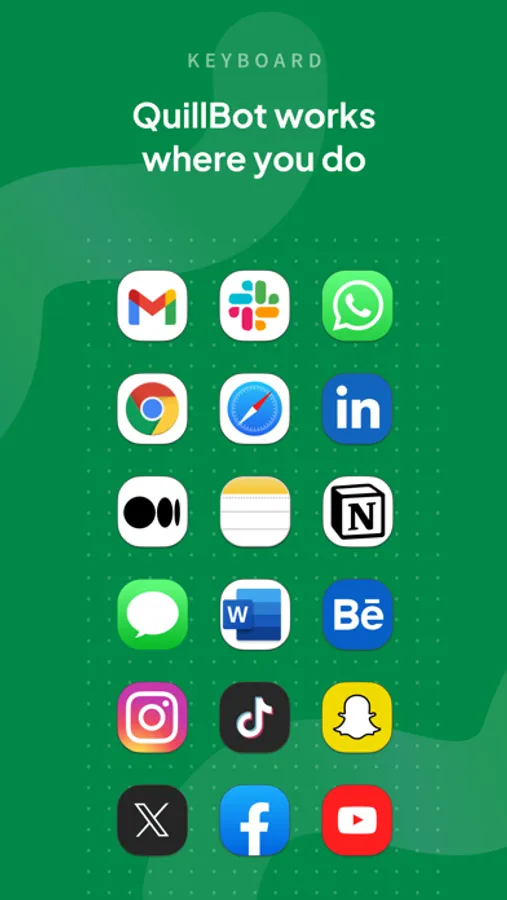 QuillBot makes it easy to write on the go for free. Our AI-powered writing app now goes beyond paraphrasing, grammar checking, AI detection, and translation to allow you to generate content with AI and save documents. Whether you’re sending an important text, drafting a work email, or crafting the perfect social media post, QuillBot’s AI keyboard ensures your writing is clear, polished, and effective.