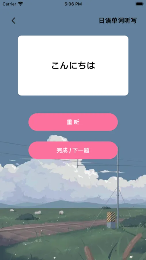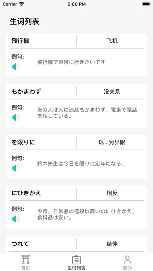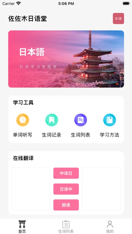 这是一款日语学习软件,里面包含中文和日语的相互翻译、单词听写、单词记录等功能。