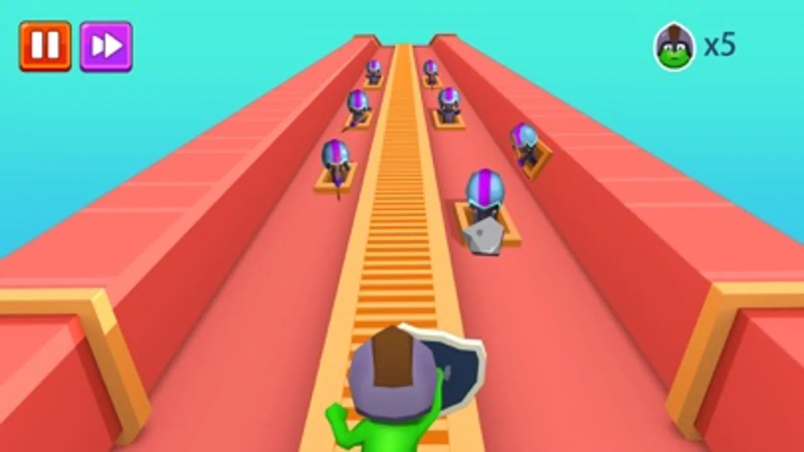Enemies can use large stones or bows and arrows to attack. Players need to quickly raise their shields for defense during the enemy's attack, and then counterattack the opponent