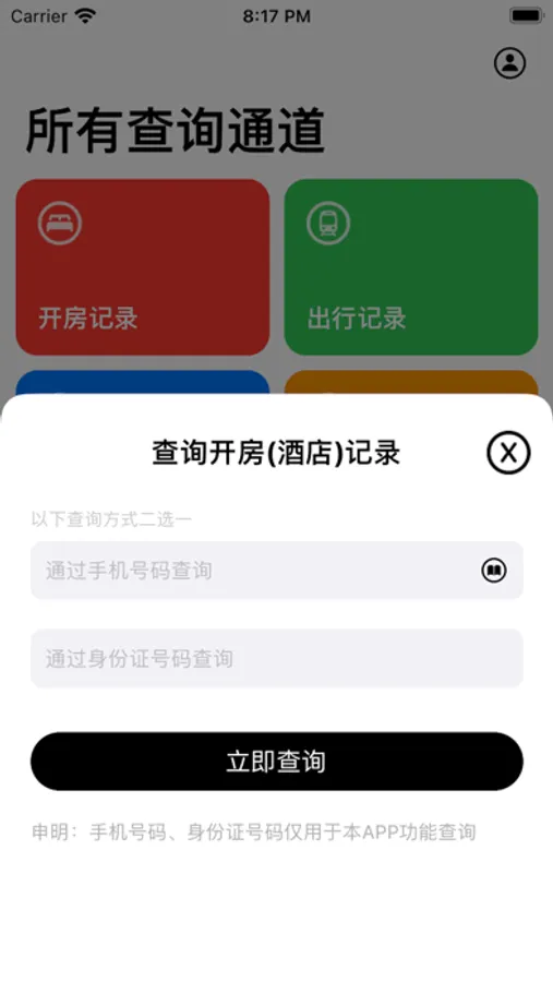 通过手机号码查询开房记录、出行记录,记录每一次出行出差方便记录报销