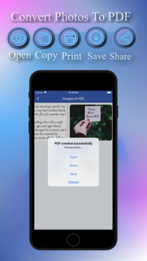 4. Text Management: Copy, bookmark, download, print, or share extracted text from photos with ease.