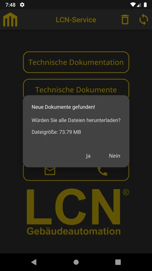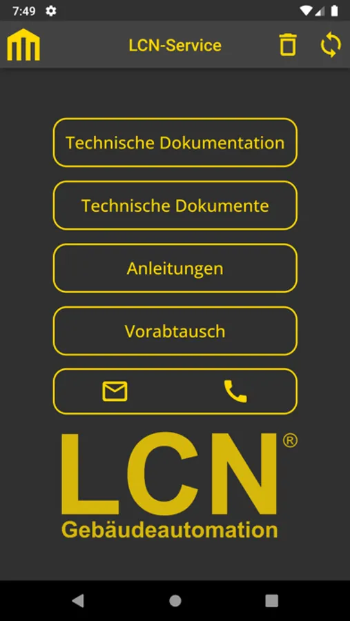 Oft gestellte Fragen zu LCN-Hardware und -Software werden in einer Wissensbasis beantwortet, die nach und nach erweitert und komplettiert wird. In der technischen Dokumentation finden Sie Beispiellösungen, wie Sie mit LCN auch komplexe oder ungewöhnliche Aufgabenstellungen meistern, einschließlich Vorschlägen zur Parametrierung oder zur Visualisierung. Damit liefert die LCN Service-App weit mehr Unterstützung als wir online in unserer Website schon bereit stellen. Sollte eine Frage in der LCN Service-App nicht beantwortet werden oder falls weitere Sie Unterstützung benötigen, können Sie direkt aus der App eine E-Mail an unsere technische Hotline senden oder sie anrufen. So wird die Arbeit mit LCN für Sie noch einfacher und bequemer.