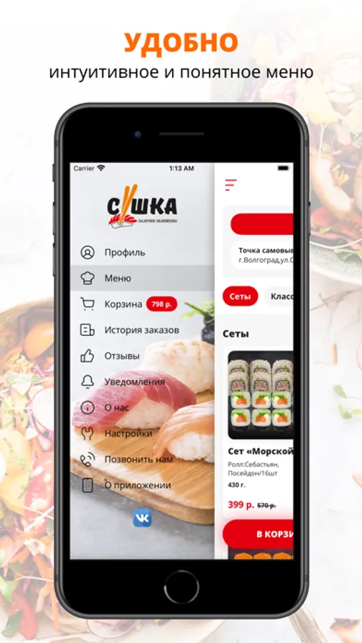 Приложение Сушка | Волгоград — это удобный способ заказа еды домой или в офис. Всегда в нашем меню - вкусные и свежие роллы, суши.