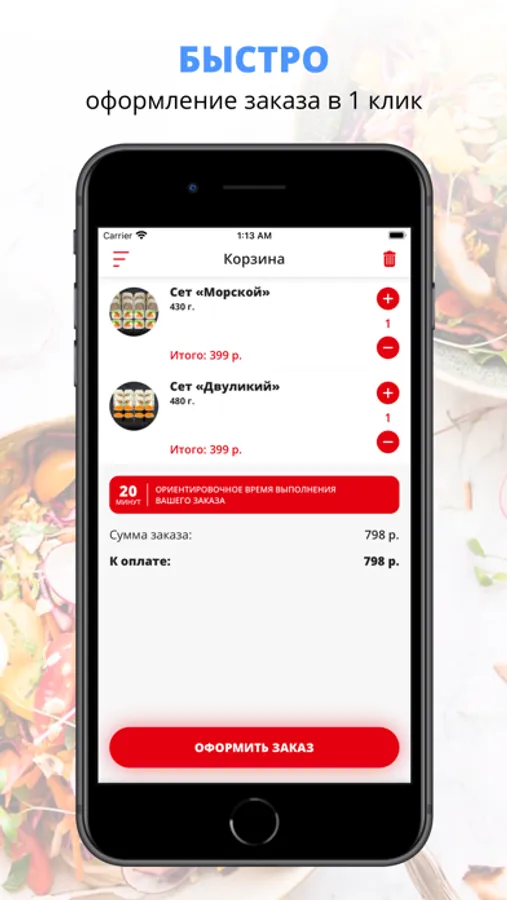 Скачивайте наше приложение, оформляйте заказ и наслаждайтесь любимой едой, где бы Вы ни были! Приятного аппетита!