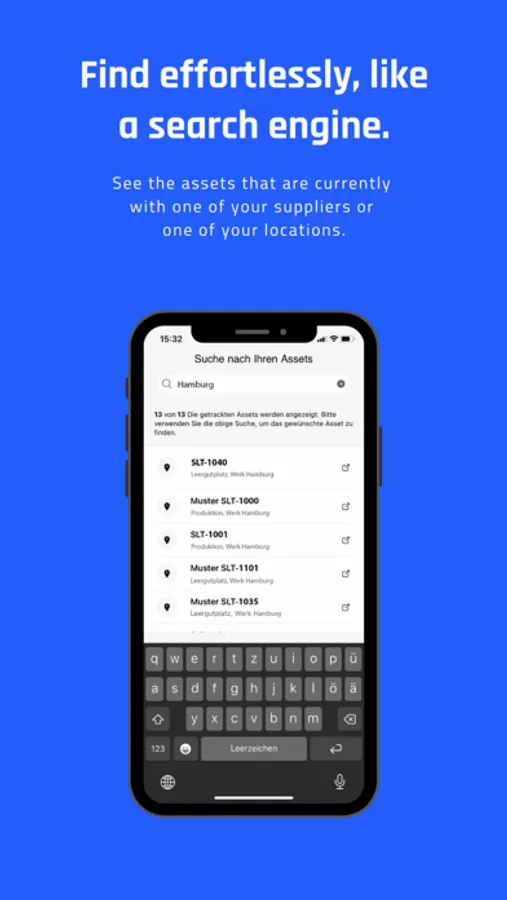 Get a complete overview of the exact location of your assets worldwide with the map view - whether at your global sites, your European suppliers, or your customers in Germany.