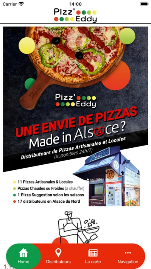 Chez Pizz'Eddy, découvrez notre concept innovant de distributeurs automatiques de pizzas artisanales via notre application mobile exclusive.