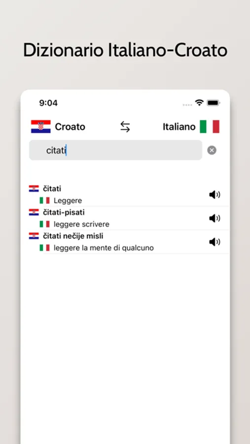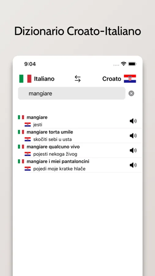 - Possibilità di cercare a partire da parole in Italiano o Croato