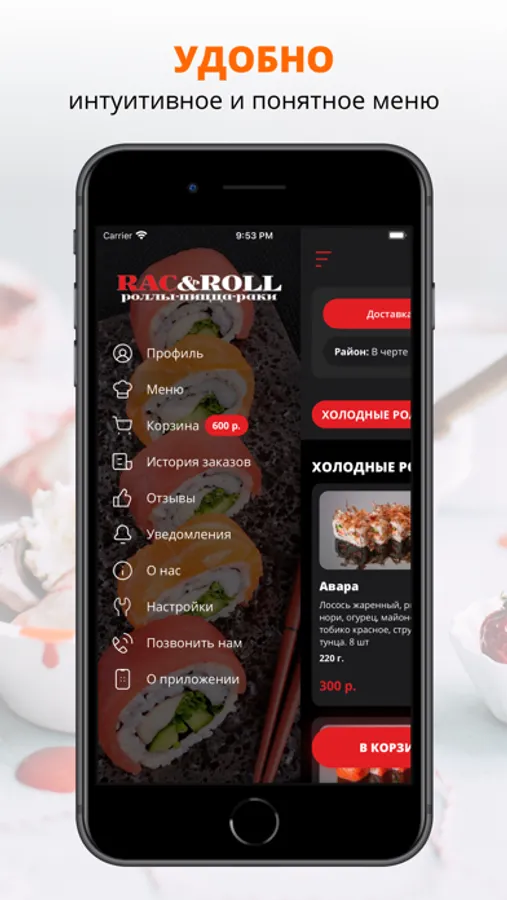 Приложение Rac&Roll — это удобный способ заказа еды домой или в офис. Всегда в нашем меню - вкусные роллы, пицца.