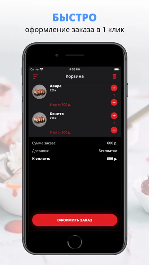 Скачивайте наше приложение, оформляйте заказ и наслаждайтесь любимой едой, где бы Вы ни были! Приятного аппетита!