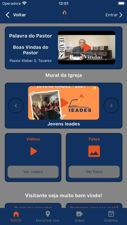 - Mural da igreja com as notícias e ações da igreja local com fotos e vídeos;